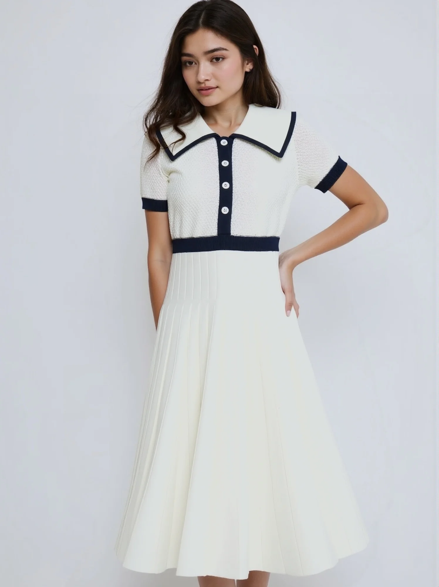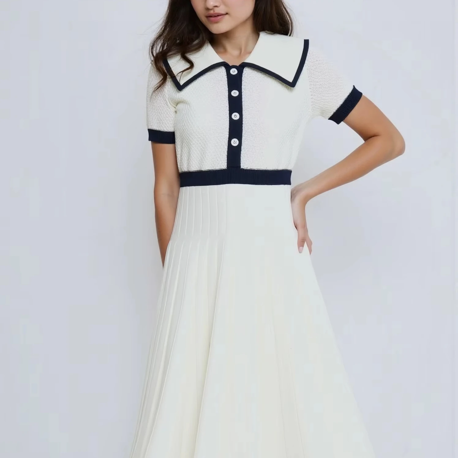 2025 Summer Collection New Style Polo-neck Knitted Dress – A Slim-Fitting College-style Dress